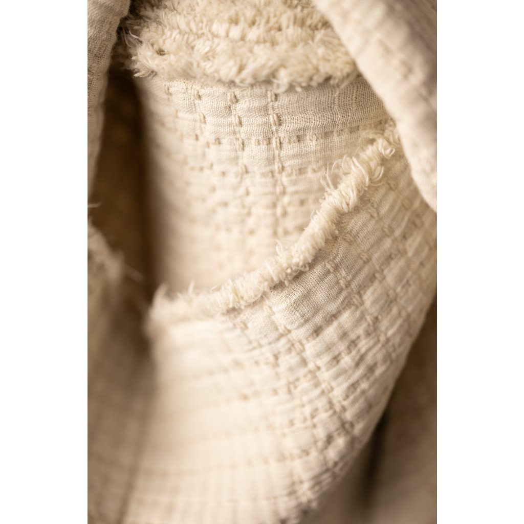 A impressively artisanal fabric and our joy for cold days. This fabric is made from 100% cotton fibers. Jacquard fabric is composed of multiple layers of strong yarn fabric. Everything is stitched with a simple cross stitch, and it's the most beautiful thing.