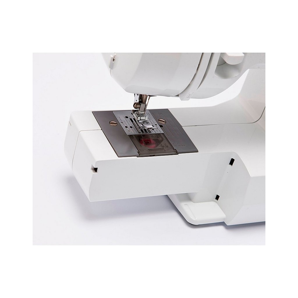 Pro začátečníky jde o skvělou volbu z hlediska poměru ceny a výkonu.. Stroj má všechno, co základně od domácího stroje dnes očekáváte (nebo byste očekávat měli) a ještě něco navíc. 25 stehů (včetně pružných stehů) zpravidla stačí víc než dost. Má volné rameno, což je věc, kterou opravdu chcete, pokud šijete rukáv nebo nohavici nebo něco titěrného. Umožňuje šít dvojjehlou a má kvalitní osvětlení pracovní plochy, což je také moc důležitá věc. Stroj je velmi silný, prošije až osm vrstev rifloviny.