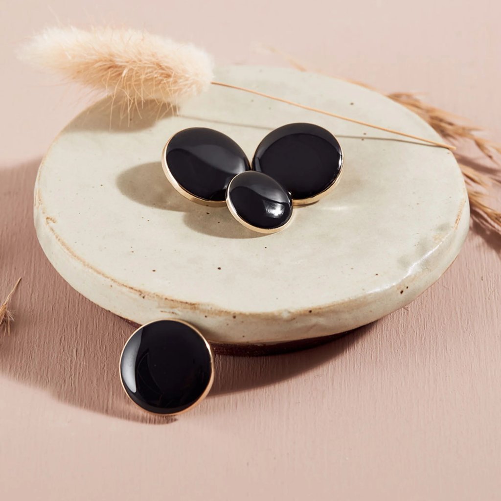 Stylové smaltované knoflíky zasazené v zamaku jsou výrazným i minimalistickým doplňkem, který povýší vaše ručně šité kousky snad až do výšin haute couture ;)