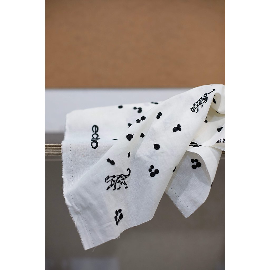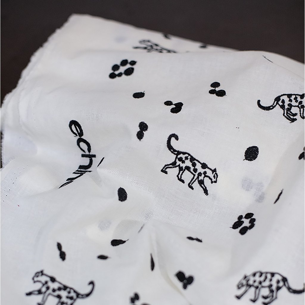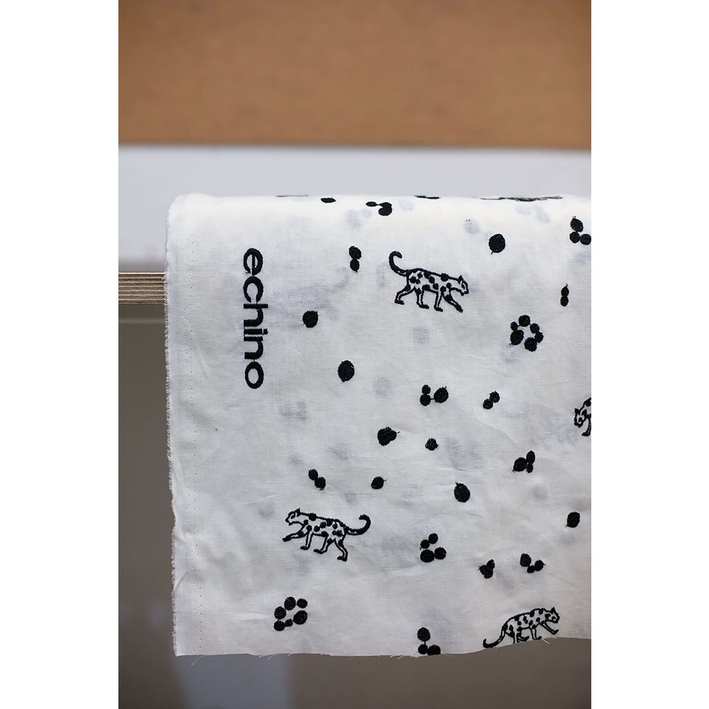 Lehké a jemné plátno s výšivkou leopardů, další krásná japonská metráž oblíbené značky Echino. Směs bavlny a lnu zajišťuje příjemné nošení a prodyšnost, bude se tedy hodit na halenky, košile a šaty. I přes jemnost je látka pevná, nebojte se tedy i doplňků- tašek, taštiček, polštářů nebo originálních závěsů.