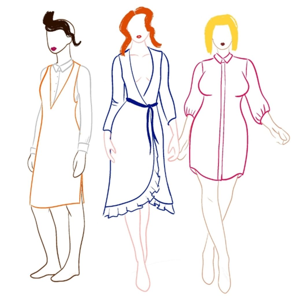 Máme pro vás tři vyzkoušené a nadčasové střihy, které si snadno upravíte podle vašich měr a stylových preferencí (ne každý je volánkový typ, někdo je páskový, někdo minimalistický). První šaty na výběr jsou klasika všech klasik - vždy pohodlné a lichotivé zavinovací šaty. Dále tu máme sofistikované košilové šaty, na kterých krásně natrénujete knoflíkové dírky a límeček. A poslední, velmi jednoduché šaty bez rukávů ideální na vrstvení.