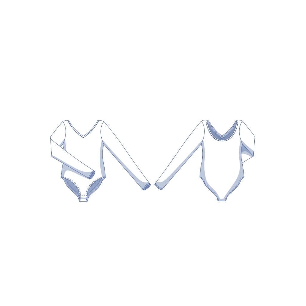 - Body na cvočky s dlouhým rukávem. Pokud body nenosíte, můžete si místo něj ušít i klasické přiléhavé triko, které skvěle funguje jako základní vrstva.