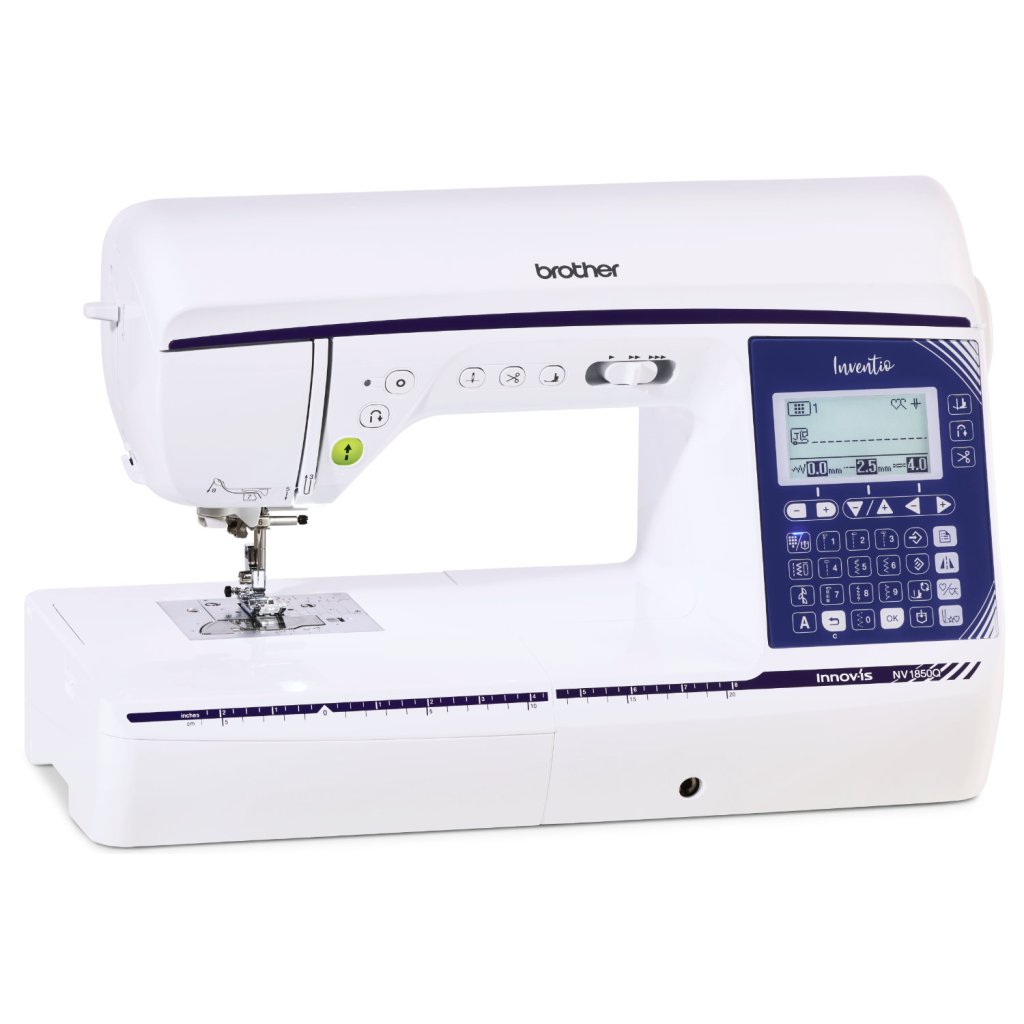 Brother Inventio NV1850 Q je elektronický šicí stroj vyšší třídy s blokovým podavačem, čtyřsměrným podáváním a funkcí ICAPS, která sama upravuje přítlak patky pro plynulé prošívání přes silné vrstvy.